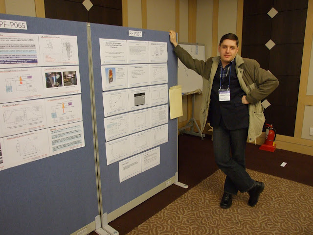 Поскольку вакуумное общество все-таки корейское, все доклады делаются только на корейском, и по прошлогоднему опыту мы уже знали, что ловить нам там нечего. Поэтому весь день отсыпались и всячески копили силы перед вечерней сессией. Правда, полтора часа своим прямым обязанностям таки уделить пришлось - торговал лицом возле своего постера. Нам достался козырный стенд сразу возле входа в выставочный зал, так что вниманием мы были не обделены.