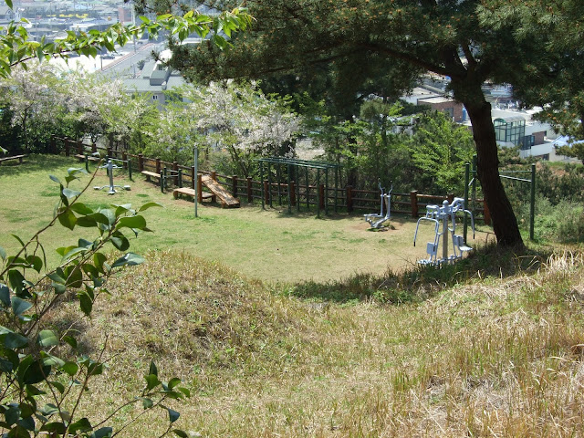 Несмотря на кладбище, корейцы выгуливают там детей, более того, на одном из склонов расположен тренажёрный "зал" под открытым небом: