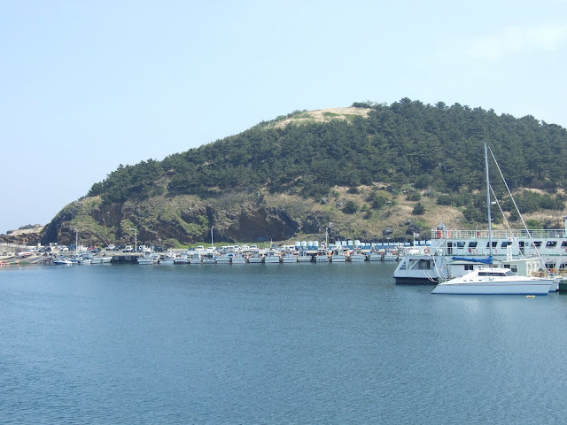 Сверху открывается замечательный вид на "Улицу кафе" и на аэропорт Чейджу. Постоянно взлетающие и садящиеся самолёты сначала вызывают любопытство, потом надоедают, потом на них перестаёшь обращать внимание.